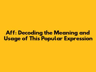 Aff: The Meaning And Use Of This Popular Expression