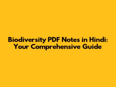 Biodiversity PDF Notes In Hindi: Your Comprehensive Guide