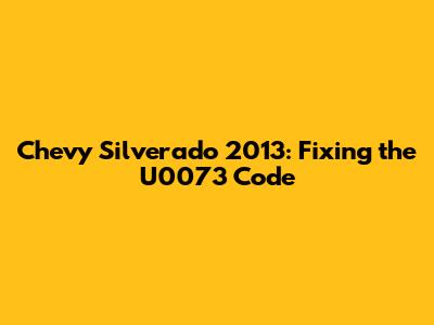 Hey guys! Ever had your Chevy Silverado 2013 throw a U0073 code at you? It can be super frustrating, but don't worry, we're going to break down what it means and how to tackle it. This guide will walk you through the ins and outs of the U0073 code, helping you understand its causes, symptoms, and, most importantly, how to diagnose and fix it. Let's get started and get your Silverado back on the road!