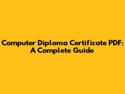 Computer Diploma Certificate PDF: A Complete Guide
