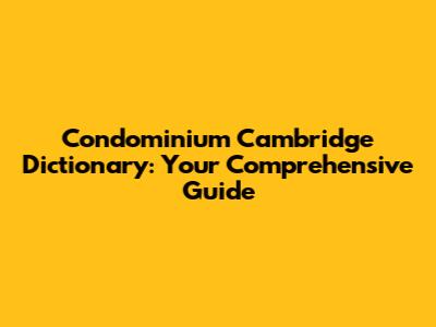 Condominium Guide: Understanding The Cambridge Dictionary Definition
