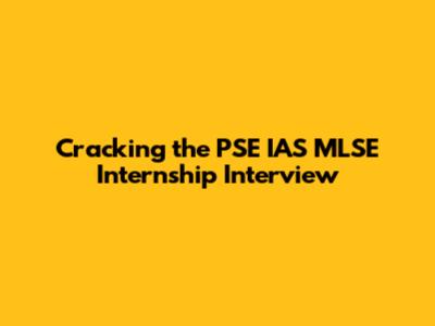 Cracking The PSE IAS MLSE Internship Interview