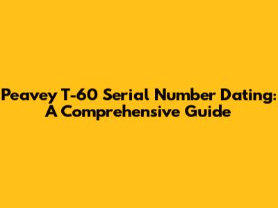 Dating your Peavey T-60 using its serial number is a rewarding journey into the history of this iconic guitar. By understanding the serial number format, considering additional clues, and utilizing online resources, you can uncover the secrets of your instrument's past. Remember to document your findings, compare notes with other T-60 owners, and consult with experts when needed. Dating your T-60 is not just about knowing its age, it's about appreciating the legacy of Peavey and the craftsmanship that went into creating this remarkable instrument. So, grab your T-60, start exploring its serial number, and embark on a fascinating adventure into the world of vintage guitars. Each T-60 has its own unique story to tell, and by deciphering its serial number, you can become a part of that story. Whether you're a seasoned collector, a curious musician, or simply an admirer of vintage instruments, the process of dating your T-60 will undoubtedly deepen your appreciation for this timeless classic. Remember, the knowledge you gain from dating your T-60 can be shared with others, enriching the community of Peavey enthusiasts and preserving the legacy of this iconic guitar for generations to come. So, embrace the challenge, dive into the details, and unlock the secrets of your Peavey T-60! By following the steps outlined in this guide, you'll be well on your way to becoming a T-60 expert and a valuable contributor to the world of vintage guitar enthusiasts. Happy dating!