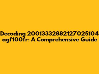 Decoding 20013332882127025104 Agf100fr: A Comprehensive Guide