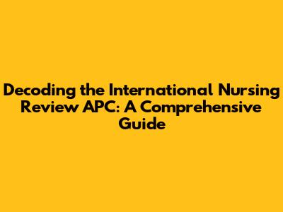 Decoding The International Nursing Review APC: A Comprehensive Guide