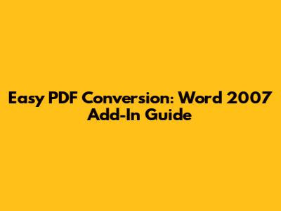 Easy PDF Conversion: Word 2007 Add-In Guide