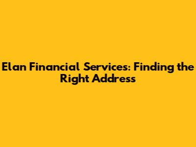 Elan Financial Services: Finding The Right Address
