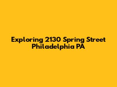 Exploring 2130 Spring Street In Philadelphia