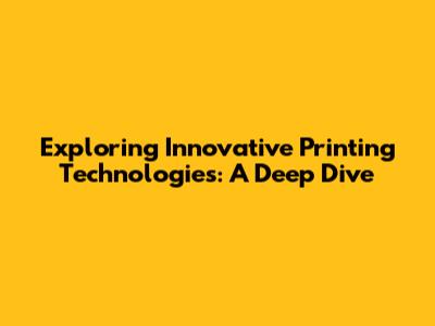 Exploring Innovative Printing Technologies: A Deep Dive