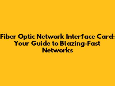 What Exactly is a Fiber Optic Network Interface Card?**