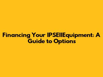 Financing Your IPSEIIEquipment: A Guide To Options