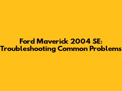 Troubleshooting Tips for Your Ford Maverick 2004 SE