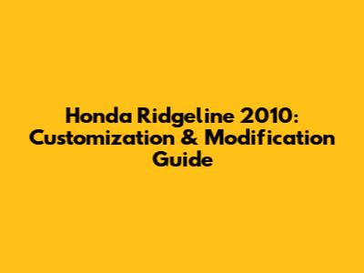 Honda Ridgeline 2010: Customization & Modification Guide