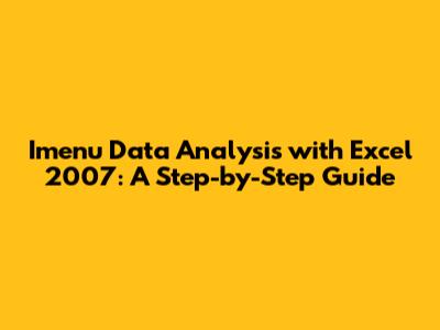 Imenu Data Analysis With Excel 2007: A Step-by-Step Guide