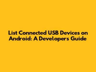 List Connected USB Devices On Android: A Developer's Guide