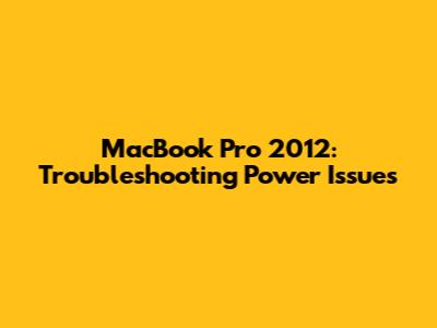 MacBook Pro 2012: Troubleshooting Power Issues