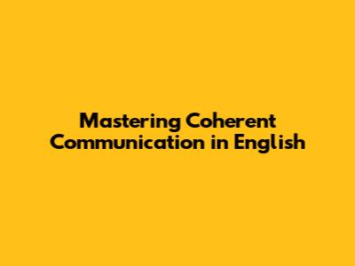 Mastering Coherent Communication In English