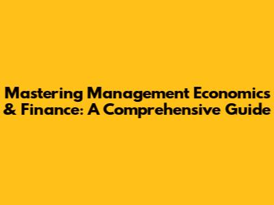 Mastering Management Economics & Finance: A Comprehensive Guide