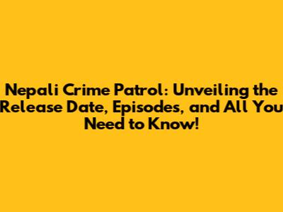Nepali Crime Patrol: Release Date, Episodes & More!