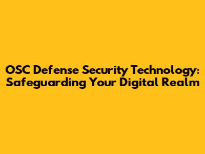 OSC Defense Security Technology: Protecting Your Digital World