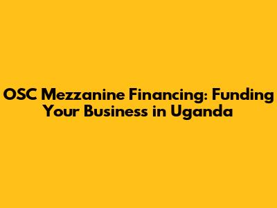 OSC Mezzanine Financing: Funding Your Business In Uganda