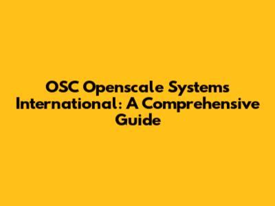 OSC Openscale Systems International: A Comprehensive Guide
