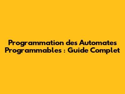 Programmation Des Automates Programmables : Guide Complet