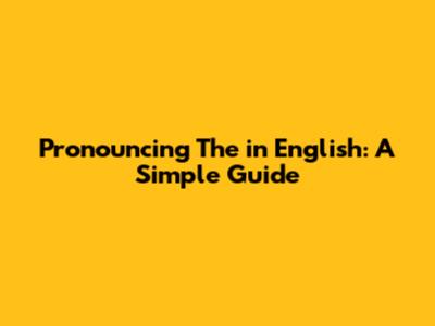 Pronouncing 'The' In English: A Simple Guide