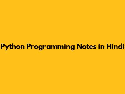 Python Programming Notes In Hindi
