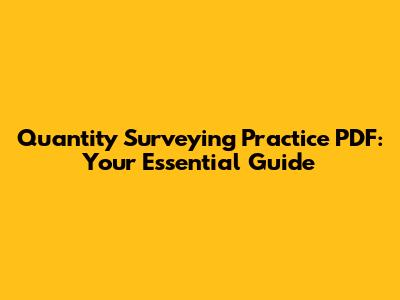 Quantity Surveying Practice PDF: Your Essential Guide