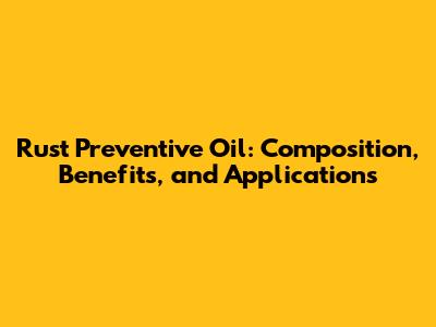 Rust Preventive Oil: Composition, Benefits, And Applications