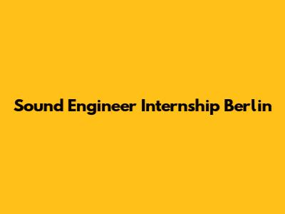 Are you ready to kickstart your journey into the world of audio engineering? A sound engineer internship in Berlin could be your golden ticket! Berlin, known for its vibrant music scene and cutting-edge studios, offers incredible opportunities for aspiring sound engineers like you. In this article, we'll dive deep into how to snag that dream internship, what to expect, and how to make the most of it.
