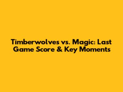 Timberwolves Vs. Magic: Last Game Score & Key Moments
