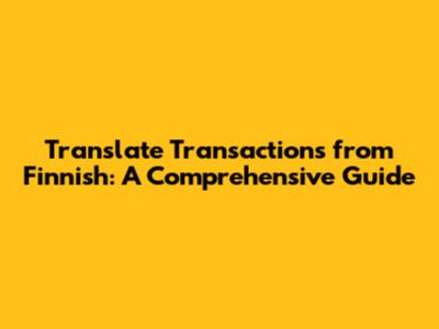 Translate Transactions From Finnish: A Comprehensive Guide