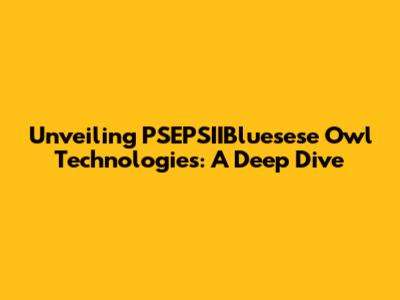Hey guys! Let's dive deep into the world of PSEPSIIBluesese Owl Technologies. It's a mouthful, I know, but trust me, this is some seriously interesting stuff. This isn't just about another tech company; we're talking about a group making waves, potentially disrupting the way we think about... well, a lot of things. So, what exactly is PSEPSIIBluesese Owl Technologies? And why should you care? Buckle up, because we're about to find out!